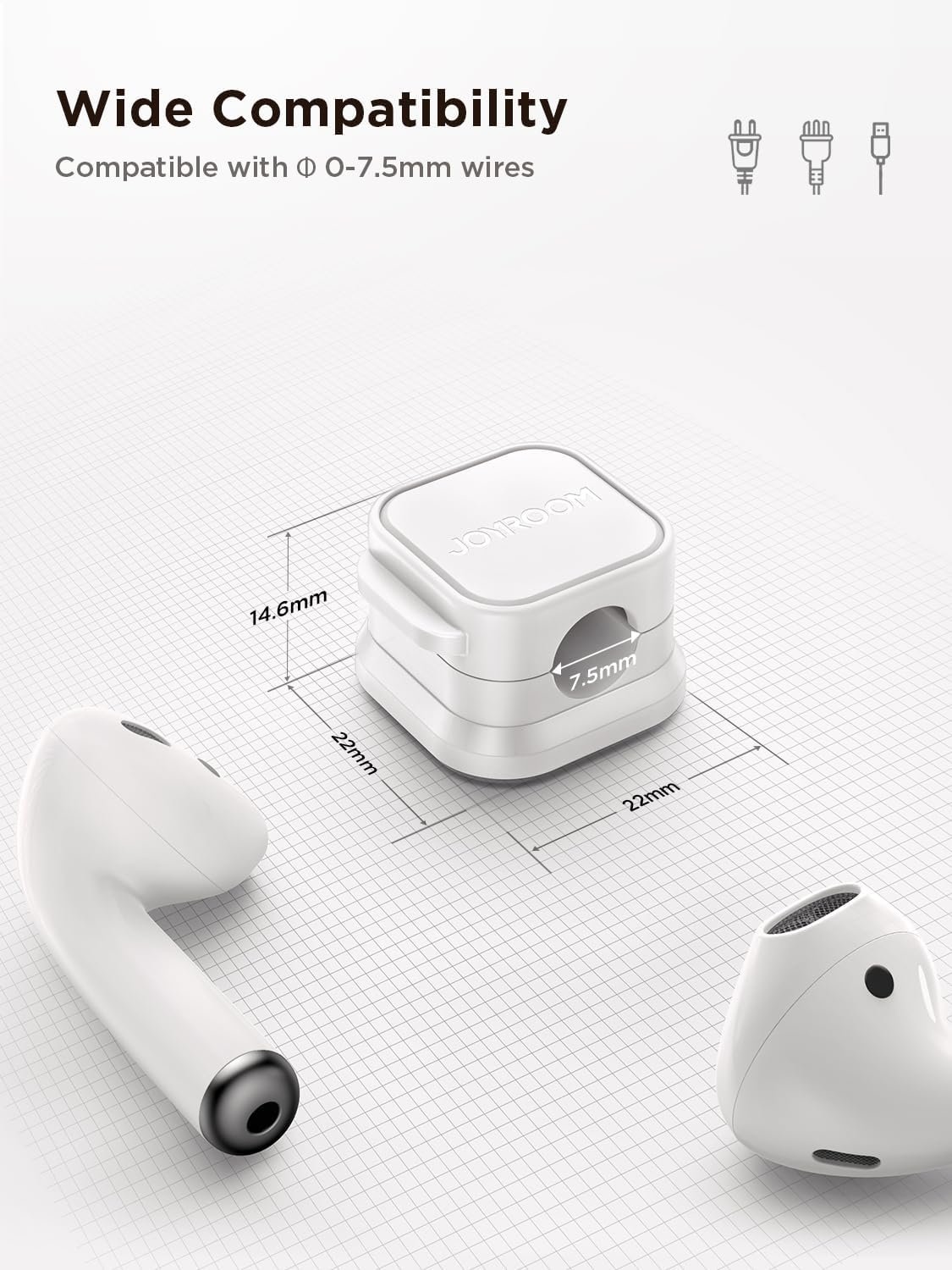 Magnetic Clamp Design: The unique magnetic opening and closing cable clip design allows you to place and remove cables with only one hand. Unlike other cord holders on the market, Joyroom cable organizer uses a sophisticated 60° rotating shaft and magnetic locking cord design, helping you easily snatch a cord off or easily add a cord easily